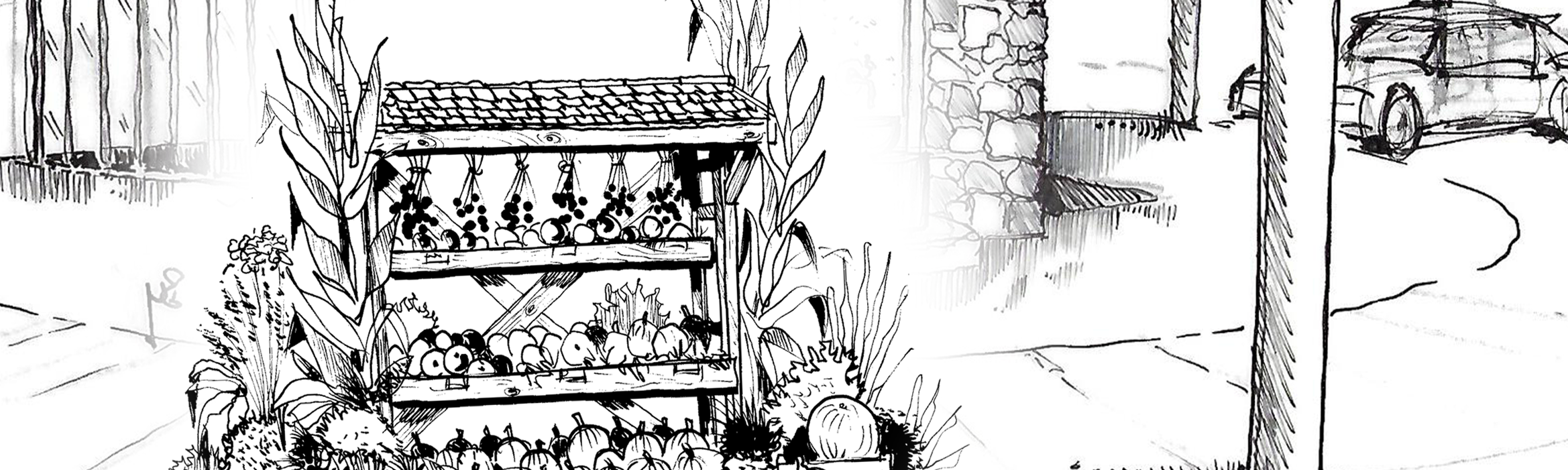 Ich stelle mich vor: Ich bin das Multidimensionale Untergeschoss, das Bovino in die Erde verankert. In meinen mineralischen und erdigen Eingeweiden, gefertigt aus Aushubmaterialien, transformieren sich Elemente. Sie kommen, gehen, zirkulieren und treffen aufeinander: Kuhmist wird in Strom verwandelt, Käse und Fleisch entfalten ihre Reife, Gemüse wird gelagert, Abwasser wird zu Dünger transformiert oder durchläuft den Wurmfilter, und dann die begrünte Wand und Fahrzeuge, die während ihres Aufenthalts ruhen. Gelegentlich verwandelt sich mein vorderer Bereich, und der Parkplatz wird zum Veranstaltungsort; Dem Samen- oder Weihnachtsmarkt, der den Austausch und die menschlichen Interaktionen in den Mittelpunkt meines Raumes stellt. Meine Wand aus Lehm-Beton ist mit einem Gemeinschaftskunstwerk von Künstlern aus dem „Vallée de la Grue“ gestaltet, und trägt zu dieser dynamischen Plattform bei.